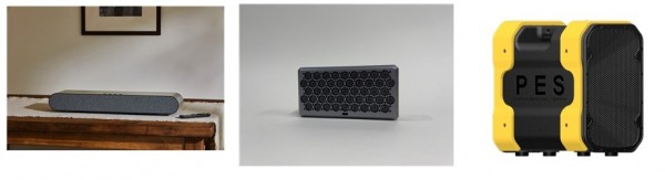 (왼쪽부터)세계 최초 본격 청각보조용 사운드바 ‘haru’nJe(하룬제)’, 초지향성 스피커 브릭미니, 이동형 비상방송 스피커 PES./사진=제이디솔루션